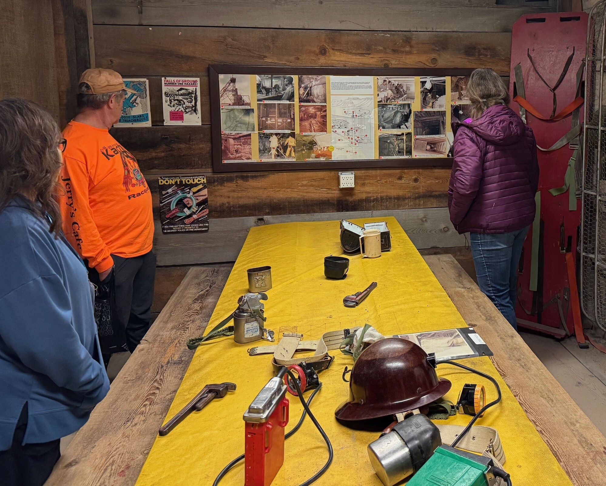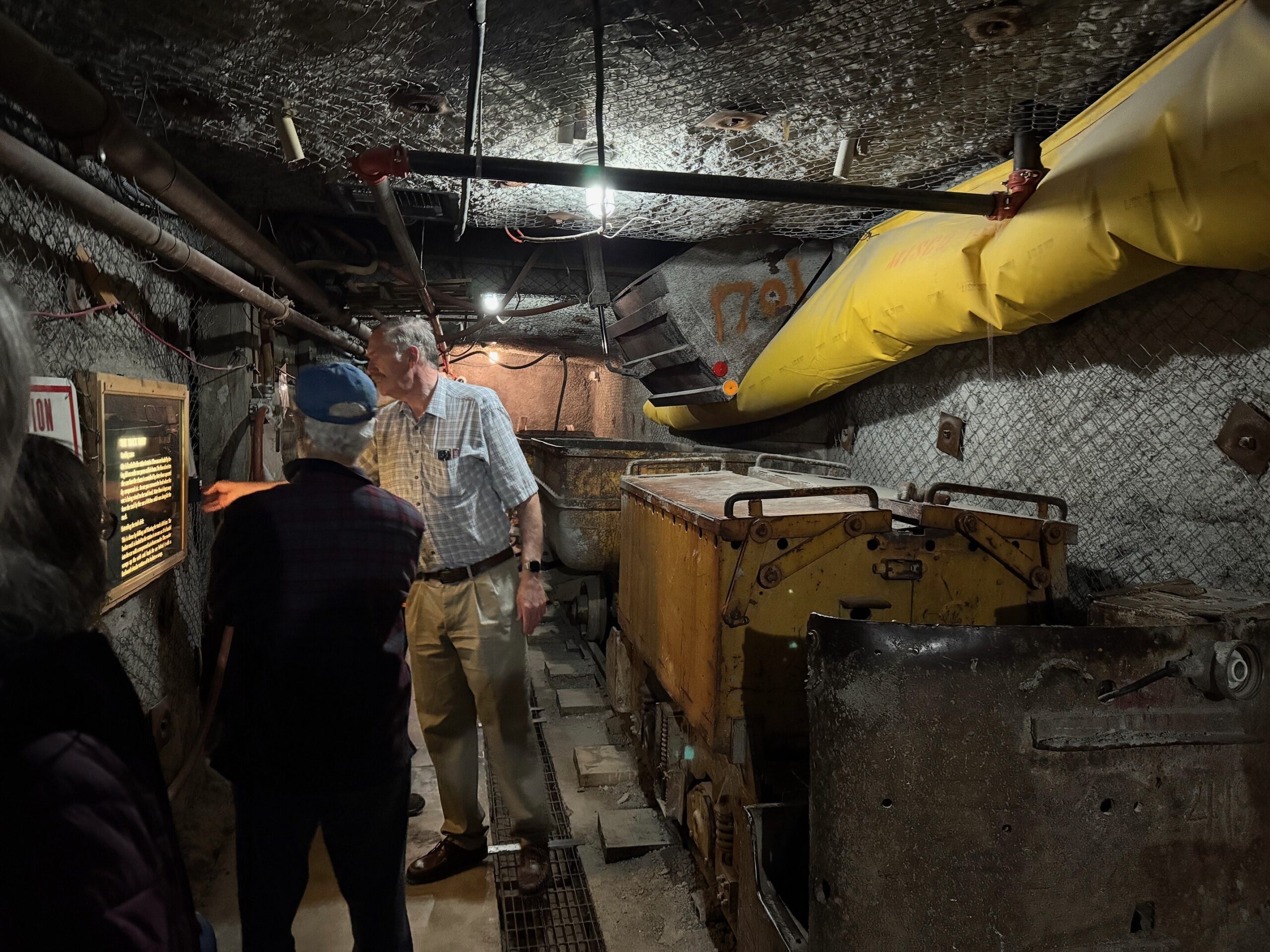 The final stop on our Cold War Patriots 2025 “Road Trip Through the Atomic Age” tour took us to the New Mexico Mining Museum in Grants, New Mexico. The museum is a unique and fascinating destination that offers visitors the opportunity to learn about the state’s rich history in mining. The museum features several interactive exhibits, including a simulated underground mine that allows visitors to experience what it was like to work in the mines. Our tour on December 13, 2025, led by the museum’s President, educated our group firsthand on some of the critical features and equipment in the mine. We learned about safety protocols, bell codes used on the lift system, blasting and drilling, and much more. It was very informative and fun for our Cold War Patriots members!